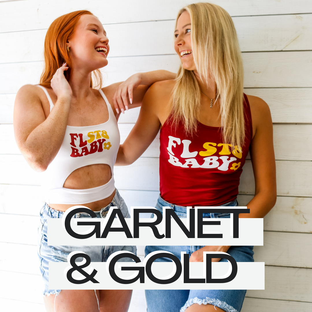 Quick View Compare WHITE FLST8 BODYSUIT $22.00 -White color-Garnet & Gold letter detail-“FL ST8 BABY"-Flower detail-Bodysuit-One size EA003941 GD22 WFLST8 OS Pick Options