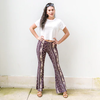 ">-Mint -Boho -Striped -Fare -Pants -Bell Bottoms -Comes in 2 Colors -Material Stretches Model is Wearing Size Small Material: 95% Polyester 5% Spandex P1548 PANT TEALP